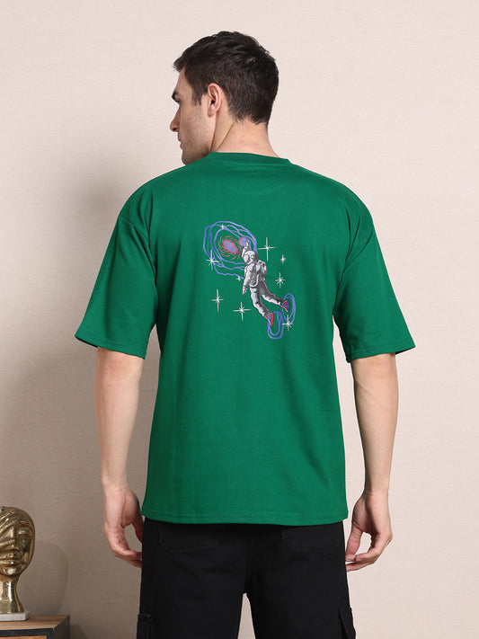 Men's Oversized French Terry Cotton T-Shirt – Fern Green with Astronaut Print