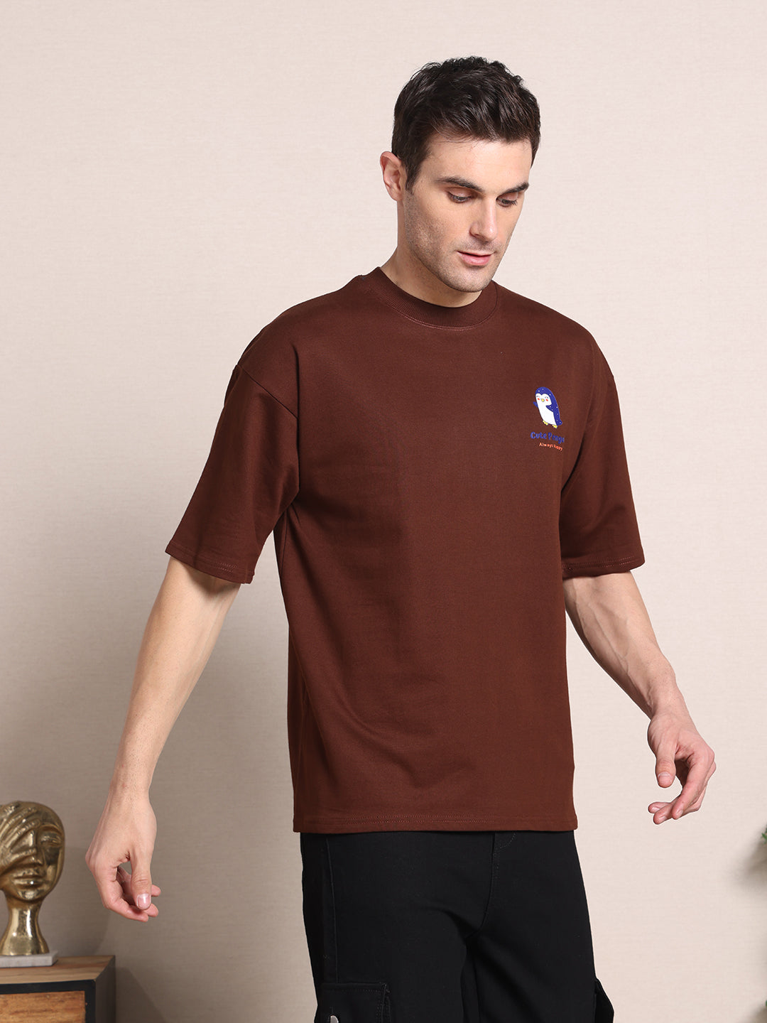 Upgrade your casual wardrobe with this premium oversized t-shirt, crafted from 100% French Terry Cotton (240 GSM) for ultimate comfort and durability. Designed in a rich Chicory Coffee Brown shade, this trendy piece adds warmth and style to your everyday look. The adorable penguin print on the chest adds a playful and charming touch, making it a must-have for those who love fun and fashion.