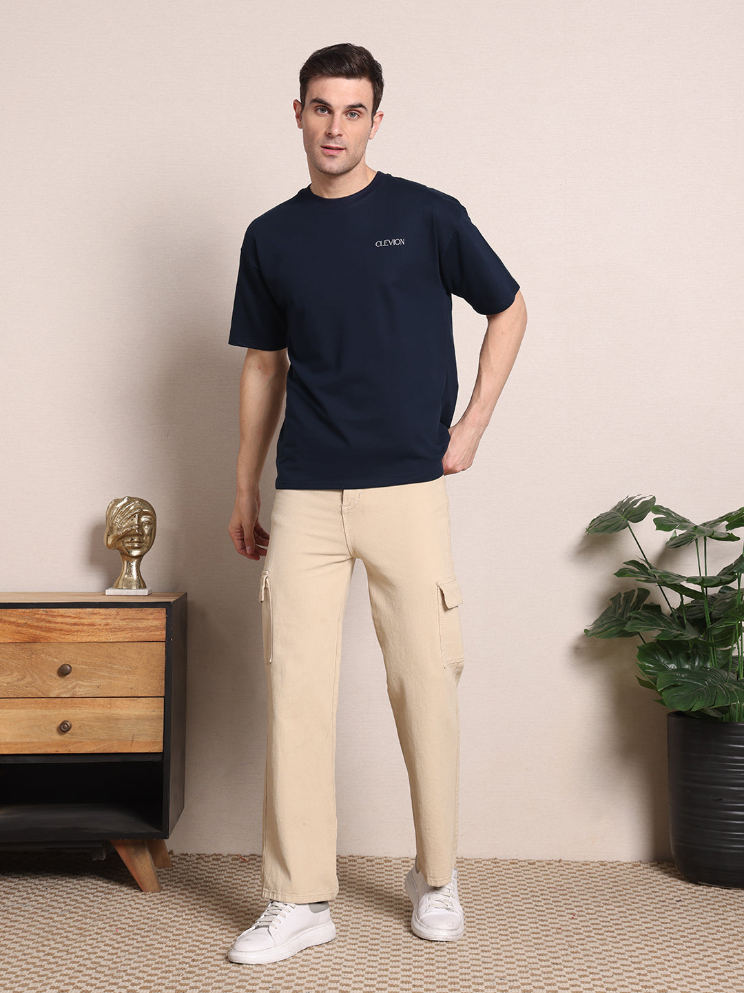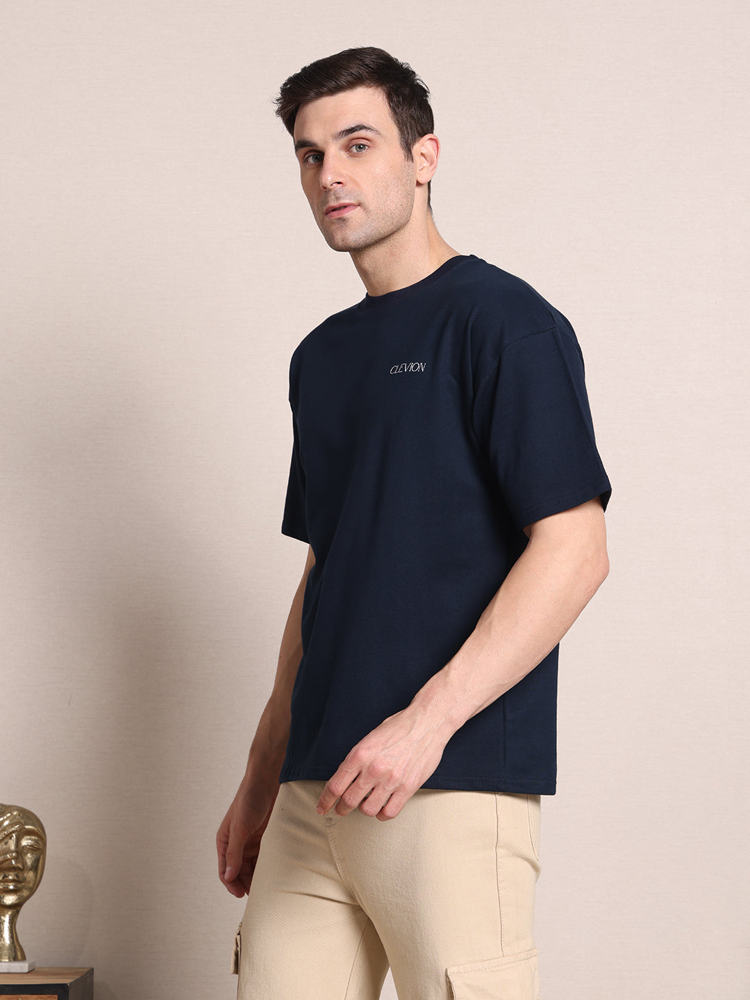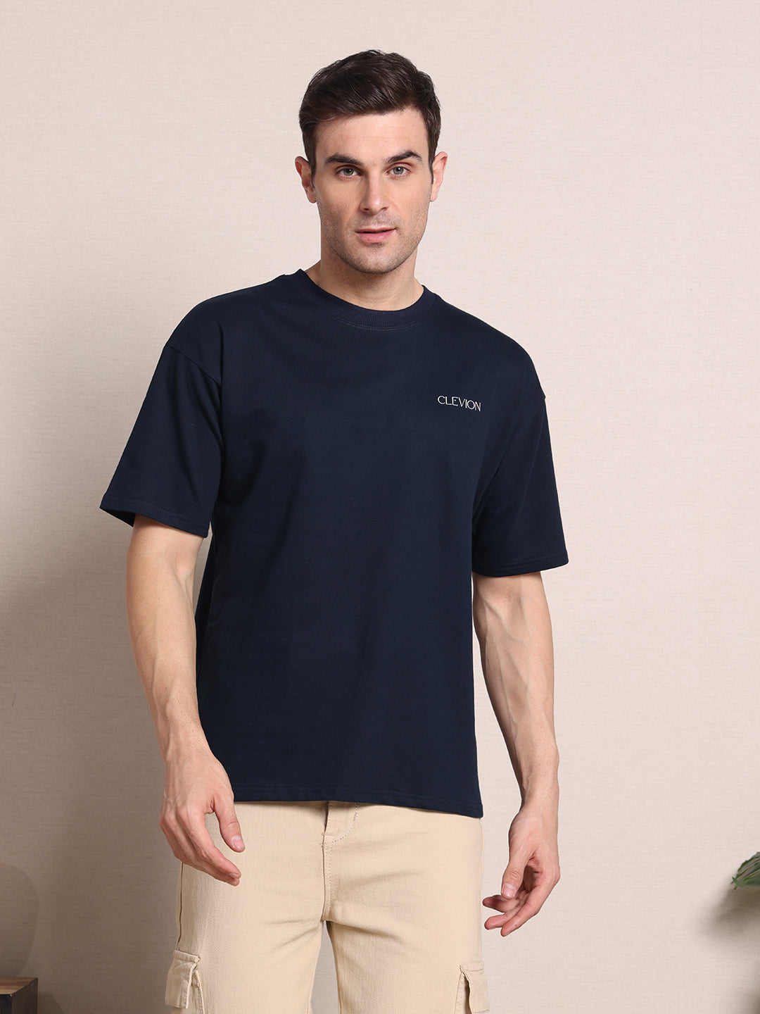 Stay ahead of the fashion curve with the Clevion Men's Oversized T-Shirt in a rich dark blue shade, crafted from 240 GSM French Terry cotton. This premium tee includes: