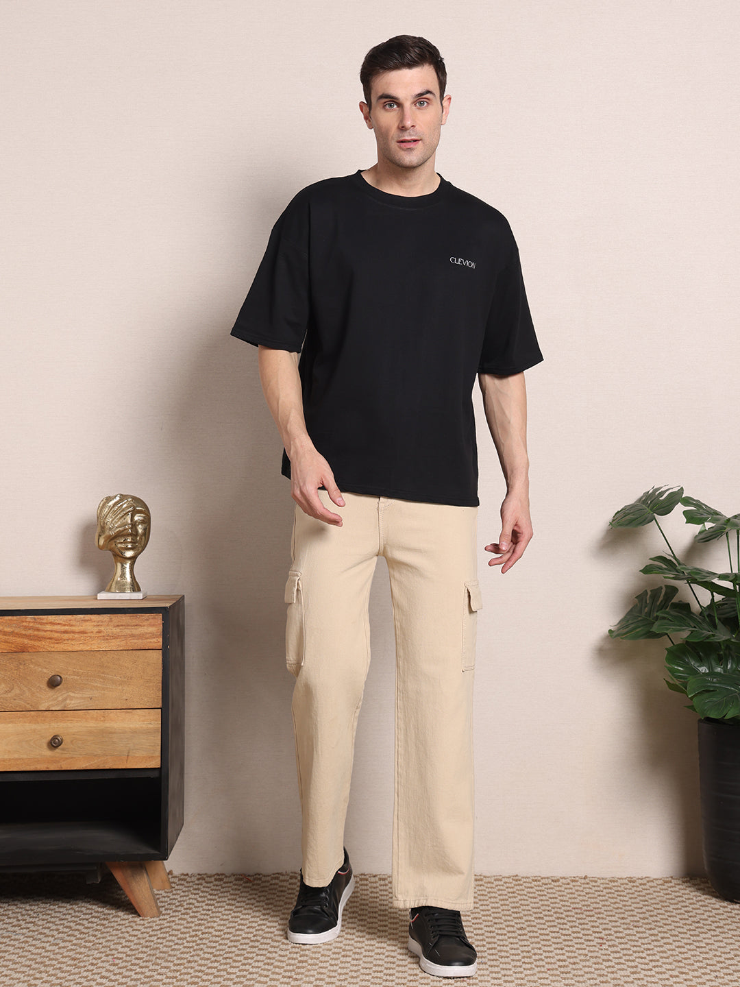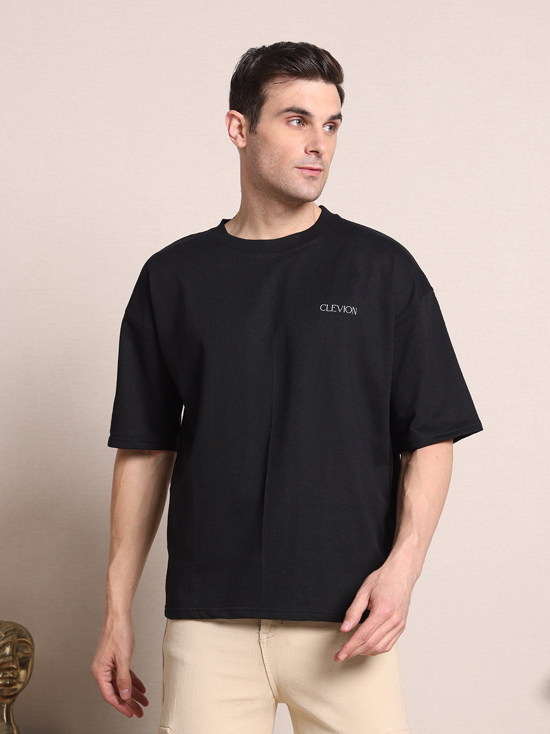 Elevate your streetwear game with the Clevion Men's Oversized Black T-Shirt, crafted from premium 240 GSM French Terry Cotton for ultimate comfort and durability. This relaxed-fit tee features minimalistic "Clevion" branding on the front and an eye-catching astronaut riding a wave print on the back, blending cosmic adventure with urban aesthetics.