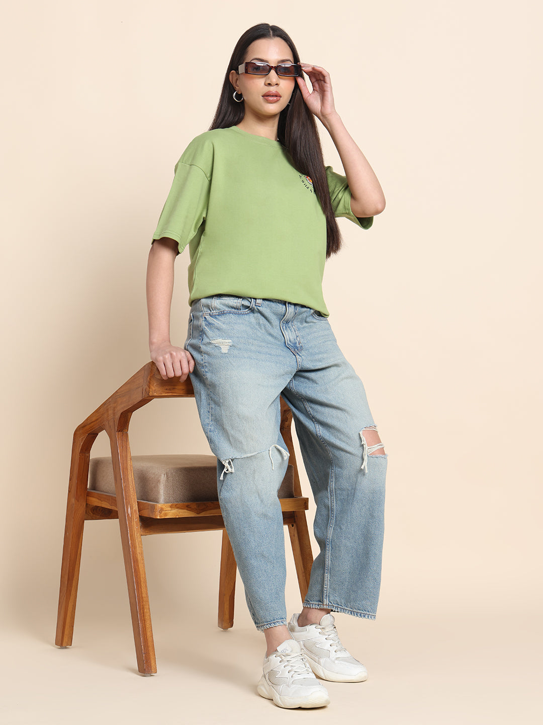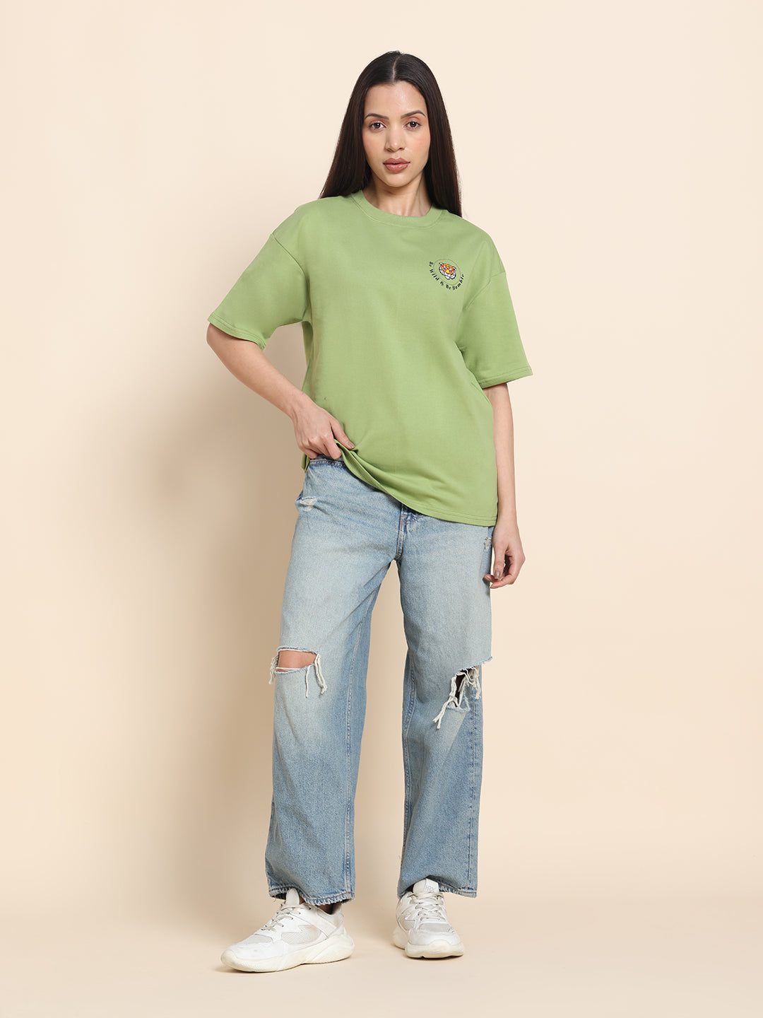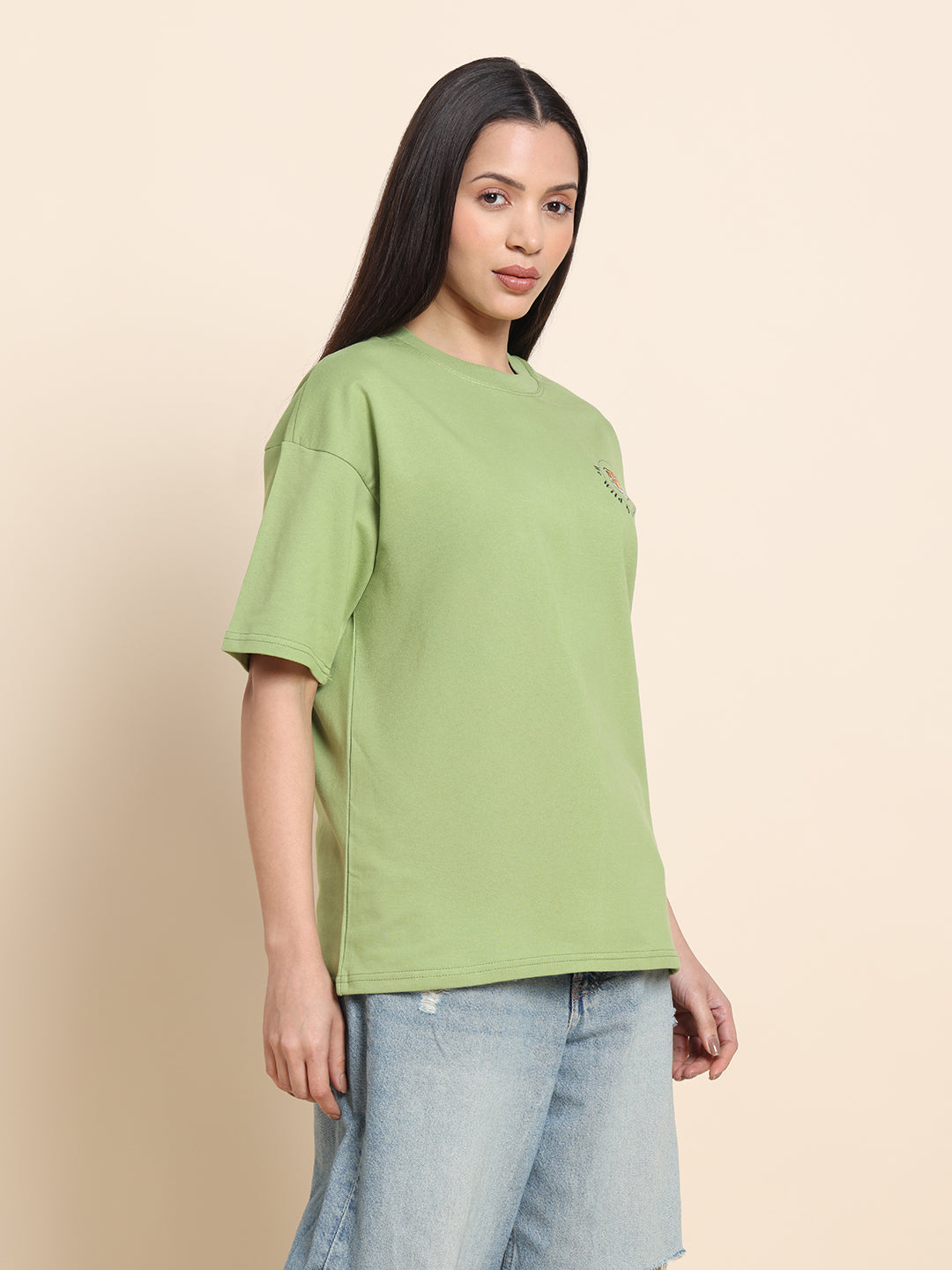 Women’s Oversized French Terry Cotton T-Shirt – Green