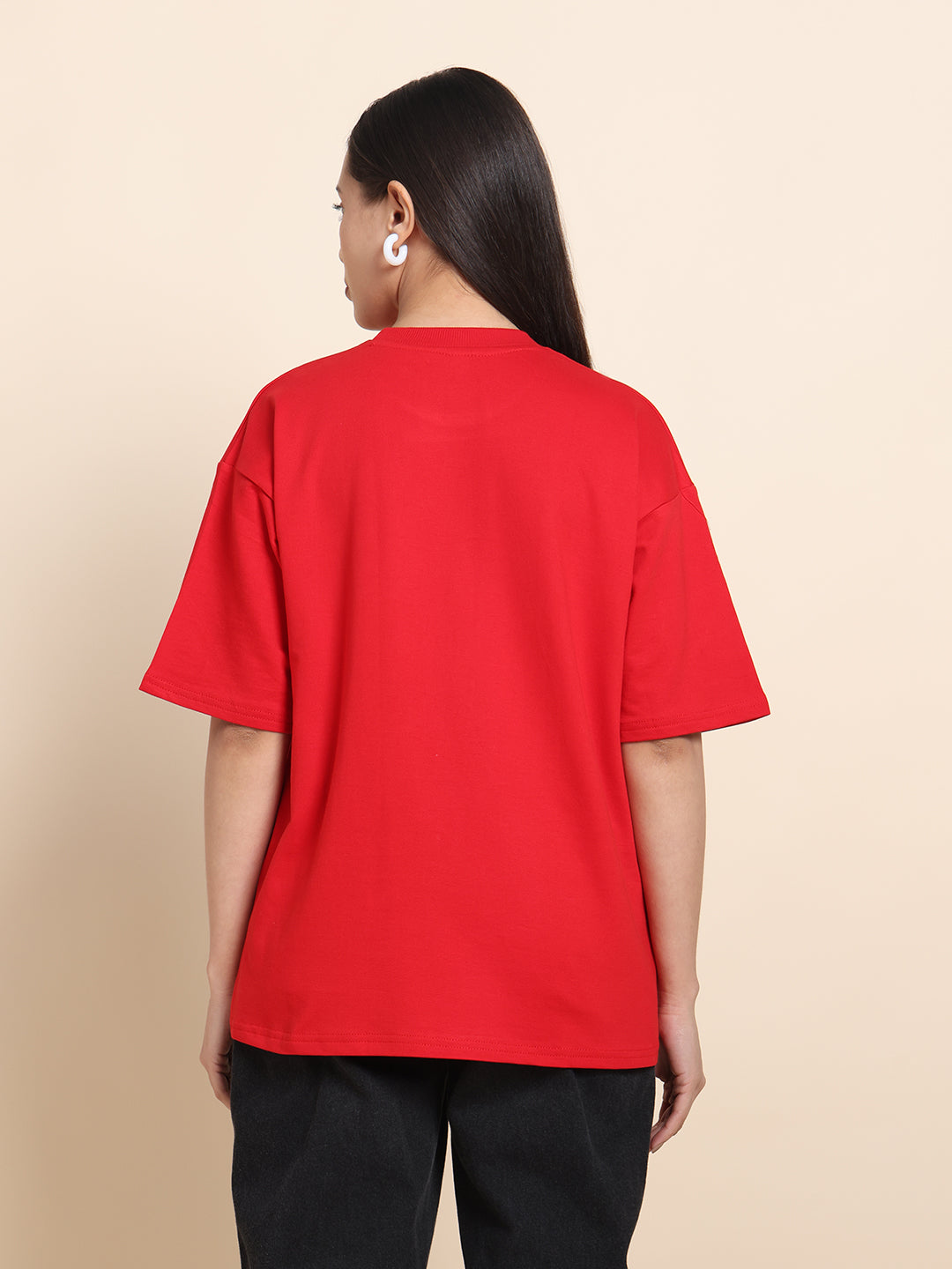 Women’s Oversized French Terry Cotton T-Shirt – Red